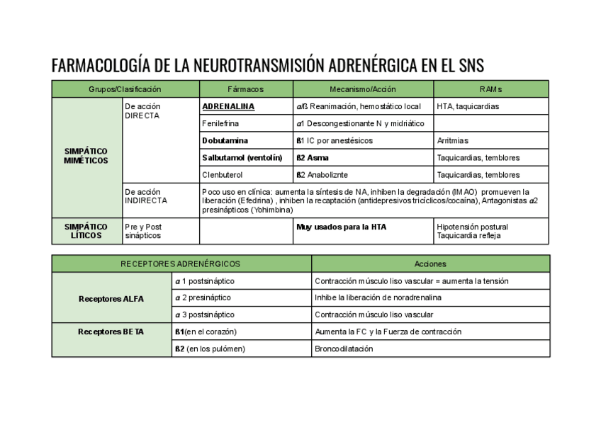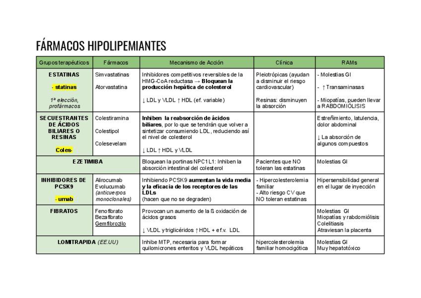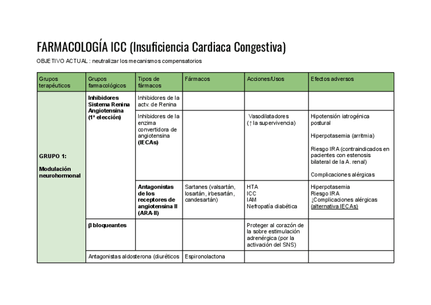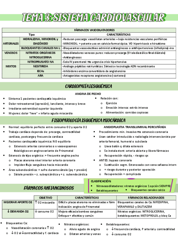 He publicado nuevos apuntes de 3º Farmacología General: Tablas resumen cardio