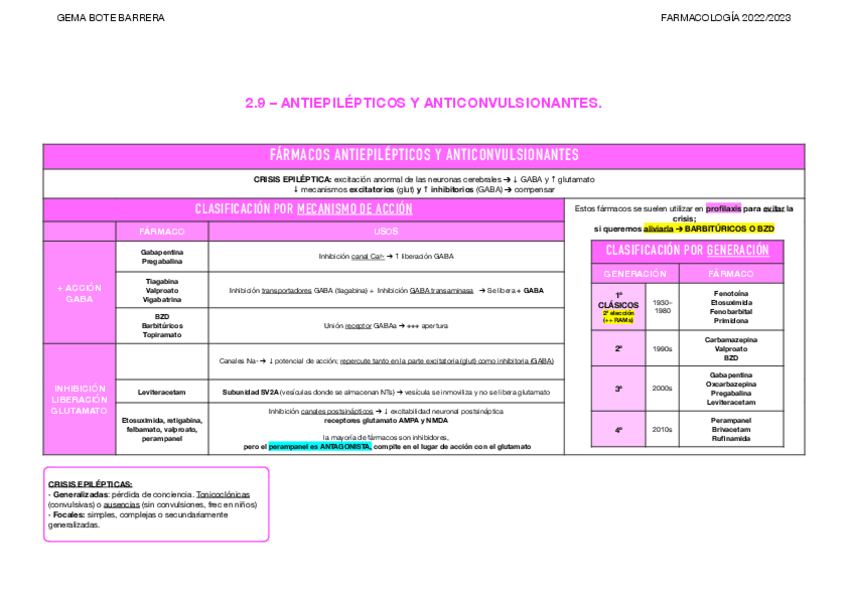 He publicado nuevos apuntes de 3º Farmacología General: Tablas resumen