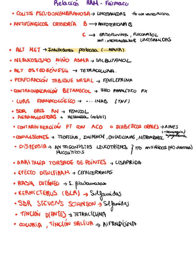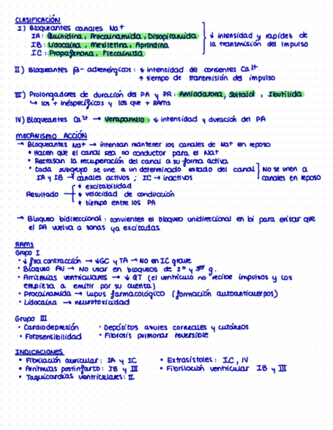 Resumen de todos los fármacos, RAM y puntos a tener en cuenta hasta el bloque de cardiaco incluido