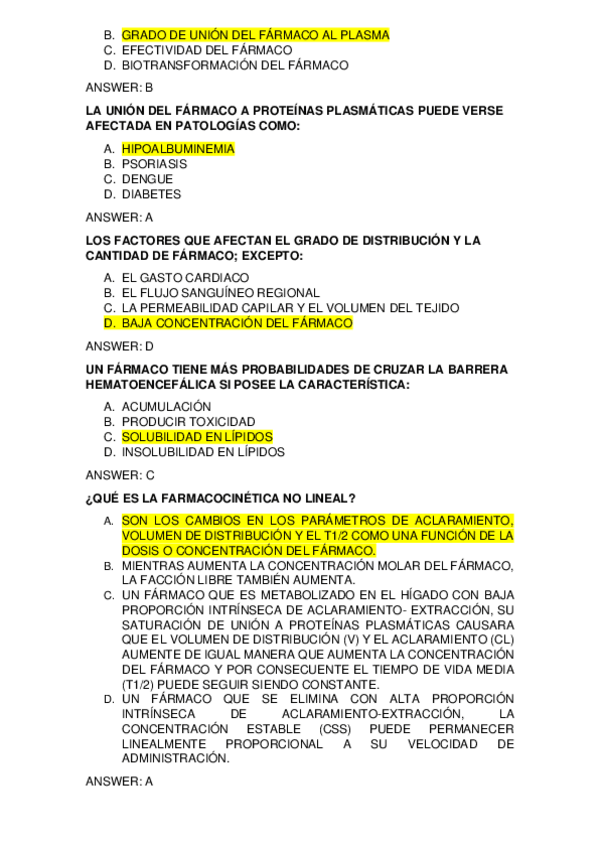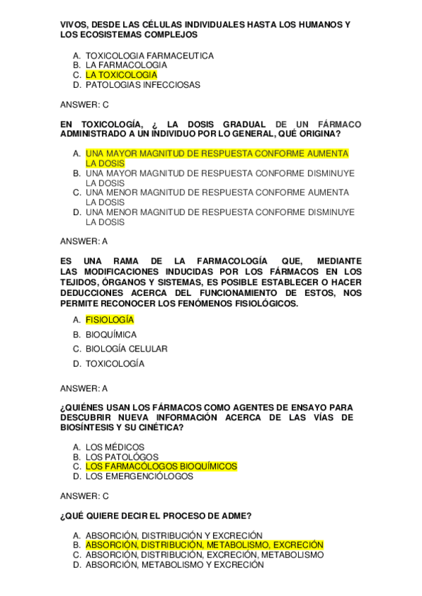 Examenes de repaso Farmacologia, farma clínica, farmacodinamica, farmacocinética, tipos de farmacos (antibioticos. antivirales y antineoplásicos), interacciones entre fármacos, toxicologia y farmacologia del Sistema Nervioso