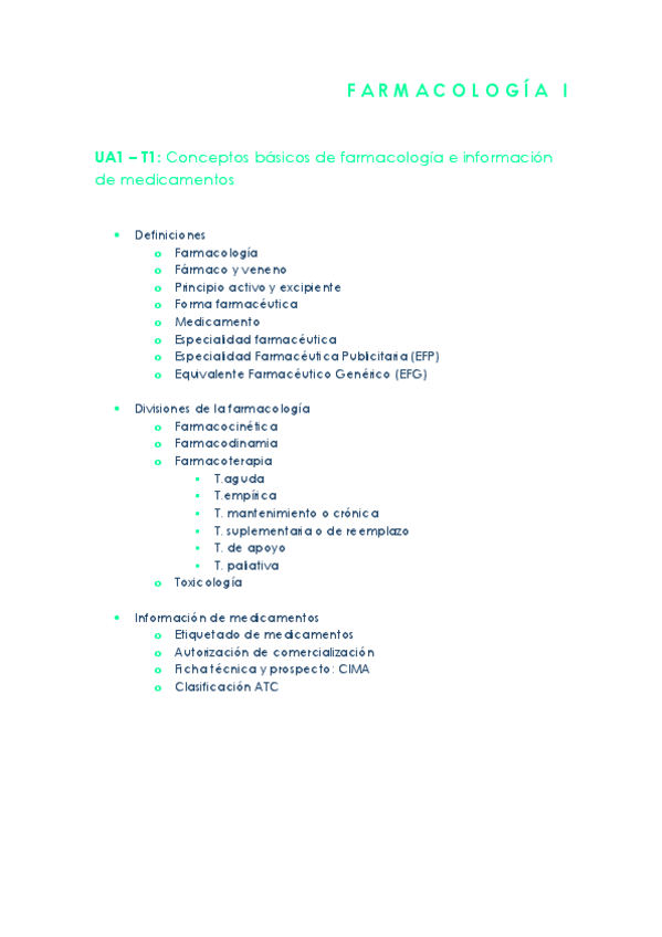 RESUMENES/ESQUEMAS 1º PARCIAL FARMACOLOGÍA I