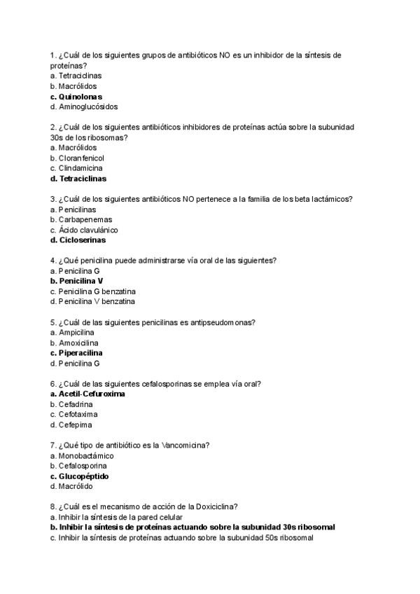 Preguntas tipo test tema 7 enfermedades infecciosas, farmacologia médica. Biomedicina