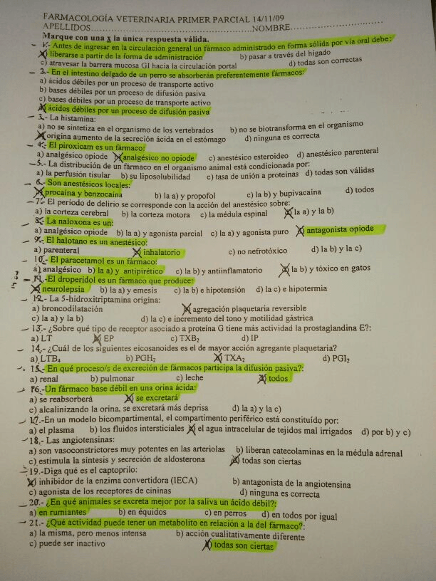 Exámenes Farmacología I