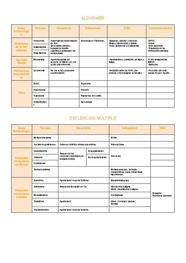 Tablas Fármacos Parcial 2