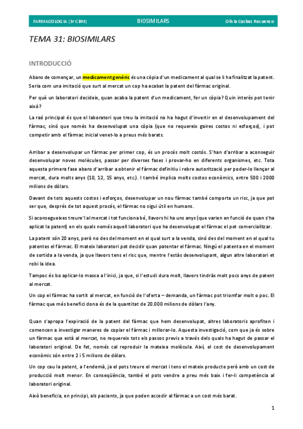 He publicado nuevos apuntes de 3º Farmacología: Primer parcial Fármaco