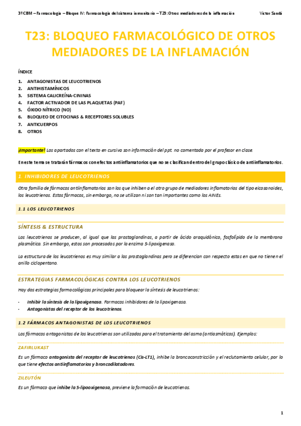 He publicado nuevos apuntes de 3º Farmacología: 23 – Otros mediadores de la inflamación.pdf