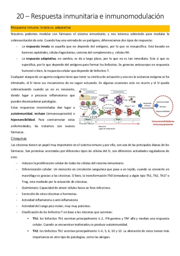 He publicado nuevos apuntes de 3º Farmacología: 20 – Respuesta inmunitaria e inmunomodulación.pdf