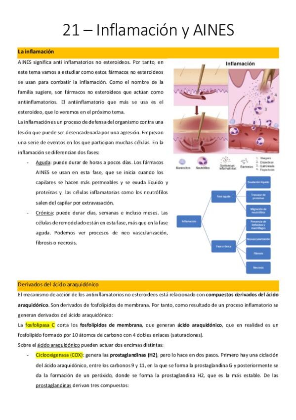 He publicado nuevos apuntes de 3º Farmacología: 21 – Inflamación y AINES.pdf