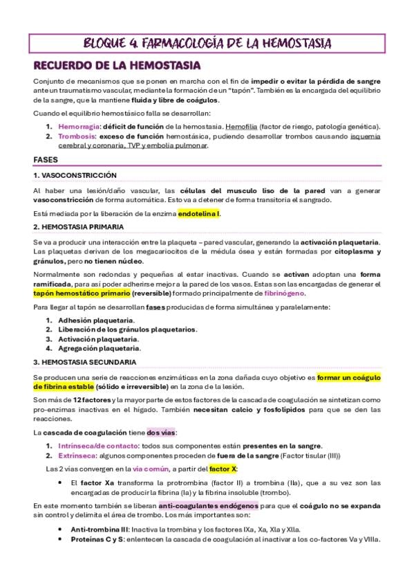 He publicado nuevos apuntes de 2º Farmacología: BLOQUE 4. FARMACOLOGÍA DE LA COAGULACIÓN