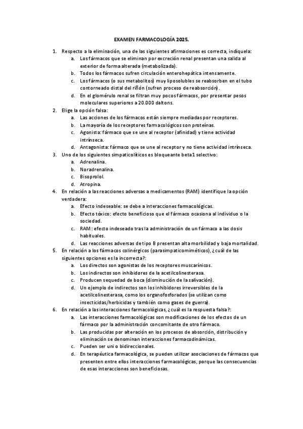 He publicado nuevos examenes de 2º Farmacología: Examen-Octubre-Farmacologia-2025.pdf