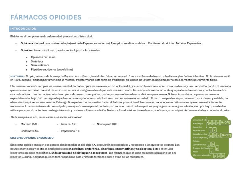 Fármacos opioides, fármacos anestésicos, fármacos para el dolor crónico