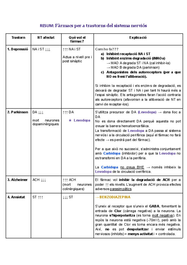 He publicado nuevos apuntes de 2º Farmacología: RESUM Fàrmacs trastorns sistema nerviós.pdf