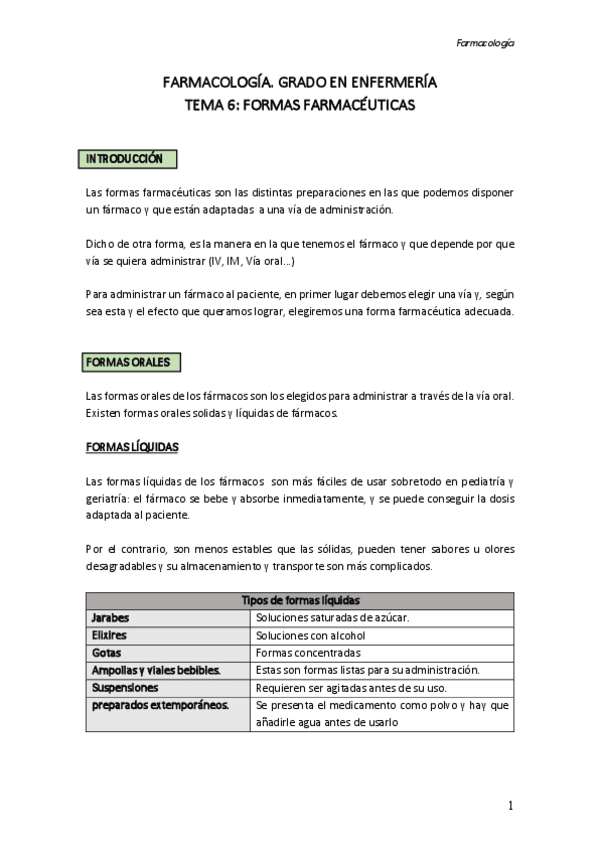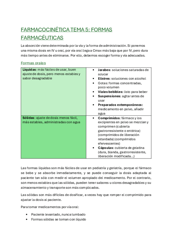 Apuntes de farmacocinética 2.5 formas farmacéuticas