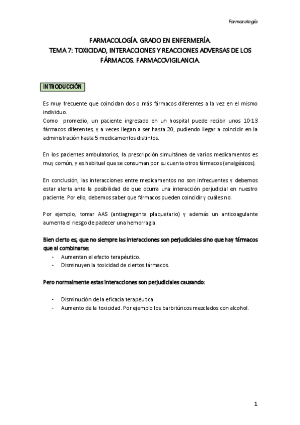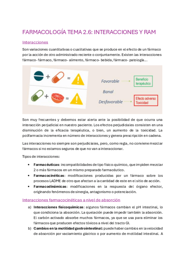 APUNTES FARMACOLOGÍA TEMA 2.6 REACCIONES ADVERSAS Y RAM, APUNTES DE CLASE CON EJEMPLO Y EXPLICACIONES