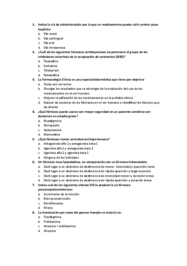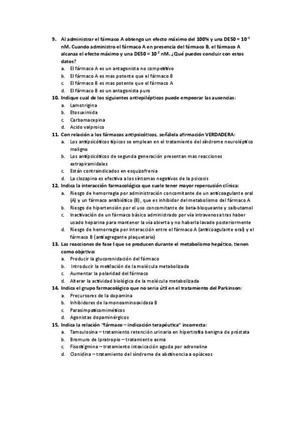 He publicado nuevos examenes de 3º Farmacología: Preguntas-Farma-SOLUCION.pdf