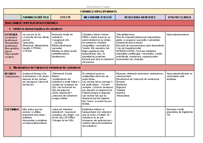 He publicado nuevos apuntes de 2º Farmacología: Tablas resumen fármaco clínica