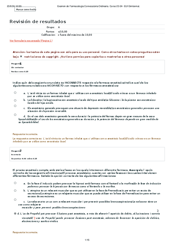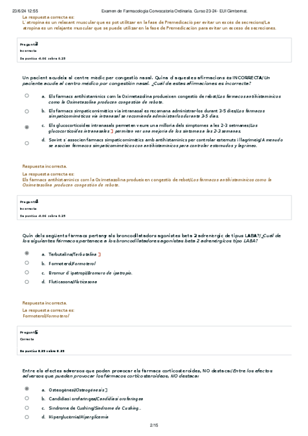 EXAMEN FARMACOLOGÍA Convocatoria Ordinaria 23-24