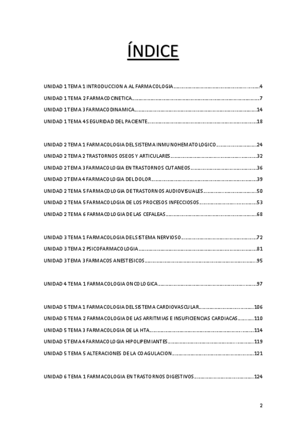 Farmacología general Psicofarmacología Farmacología SNA Farmacología del dolor y la inflamación Farmacología de procesos infecciosos Farmacología en oncología Farmacología respiratoria Rinitis alérgica y resfriado común Farmacología del aparato cardiovasc