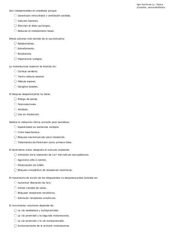 En la primera pregunta FALTA este inicio "LOS BLOQUEANTES NEUROMUSCULARES son indispensables en anestesia porque..."