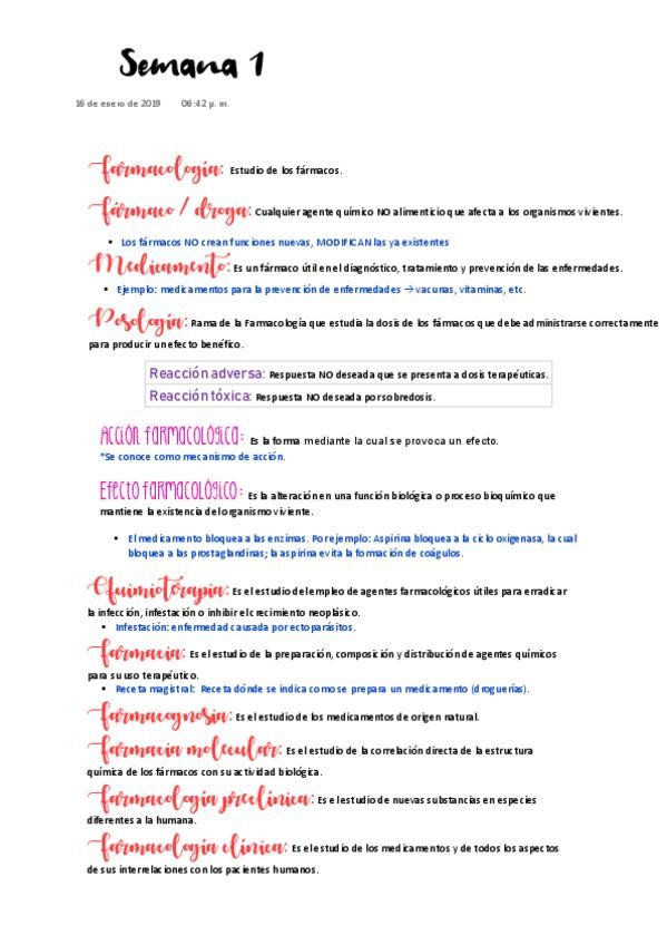 Apunte completo del Tema 1: Introducción a la Farmacología, elaborado para la materia de Farmacología de Medicina (UNAM, segundo año). Incluye definiciones clave (fármaco, medicamento, droga, farmacología, farmacocinética y farmacodinamia), ramas de la fa