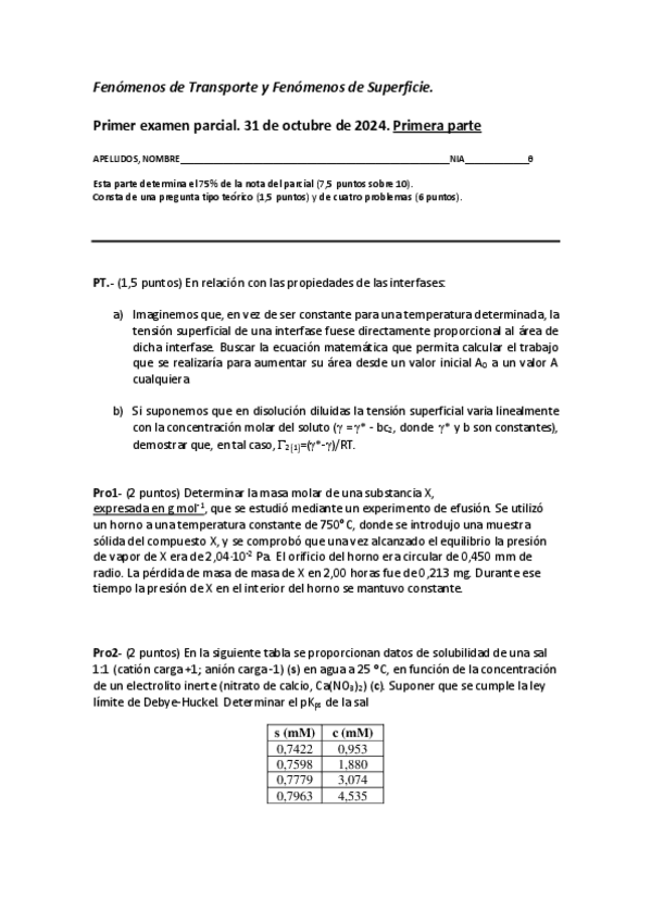 He publicado nuevos examenes de 3º Fenòmens de Transport i Fenòmens de Superfície: FTS 1er parcial 24-25.pdf