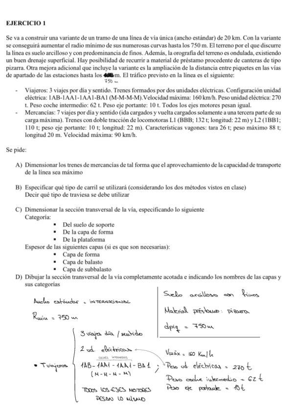 Ejercicios de segundo parcial de Ferrocarriles sobre trazado ferroviario