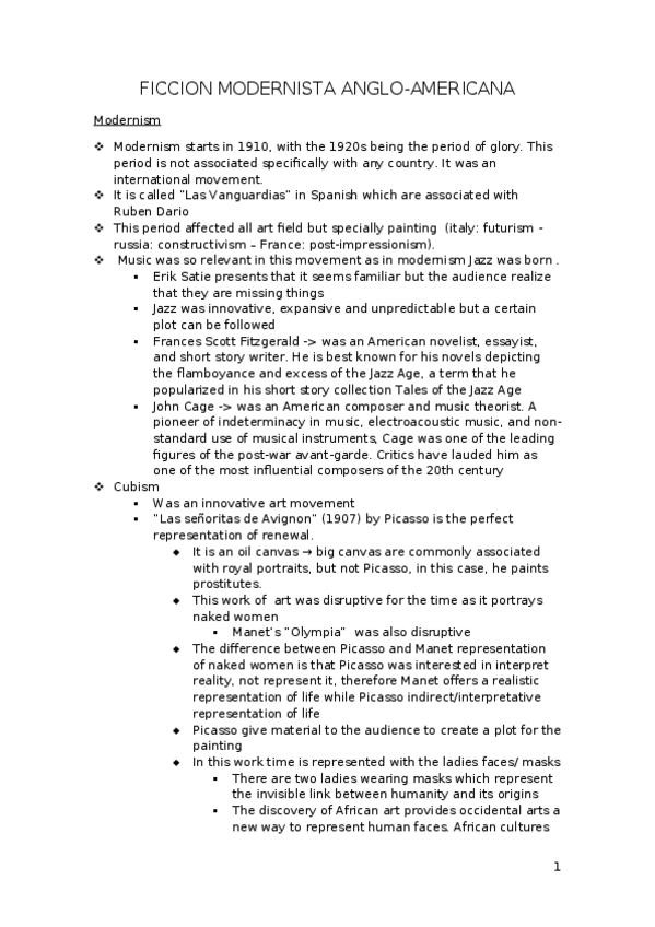 He publicado nuevos apuntes de 4º Ficción Modernista Anglonorteamericana: Modernist-Fiction-Exam-notes.docx