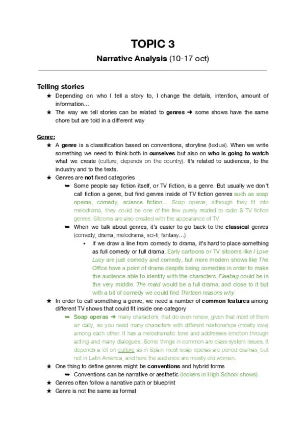 Notes for TV Fiction Shows / Ficción Televisiva, apuntes. Clases en inglés con Asier, curso 2025/26. Notas / apuntes completos con apuntes del profesor e incluso anotaciones de tutorías personalizadas que pueden resultar útiles.