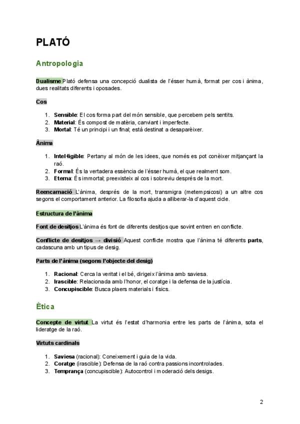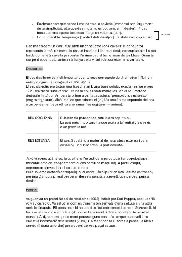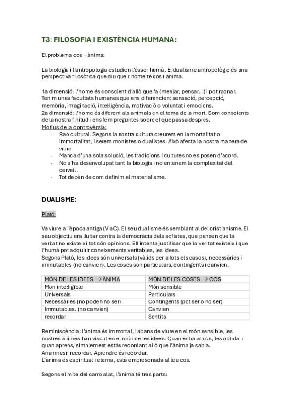 Apunts tema 3 filosofia i existència humana, dualisme i monisme. Plató, Descartes, Eccles...