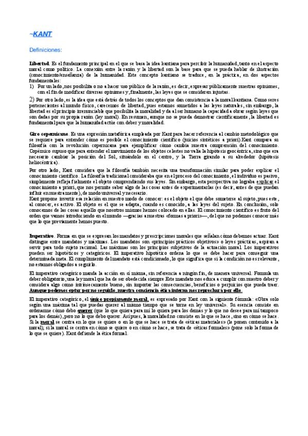 Esquema visual sobre los pensamientos más importantes que planteó Kant.