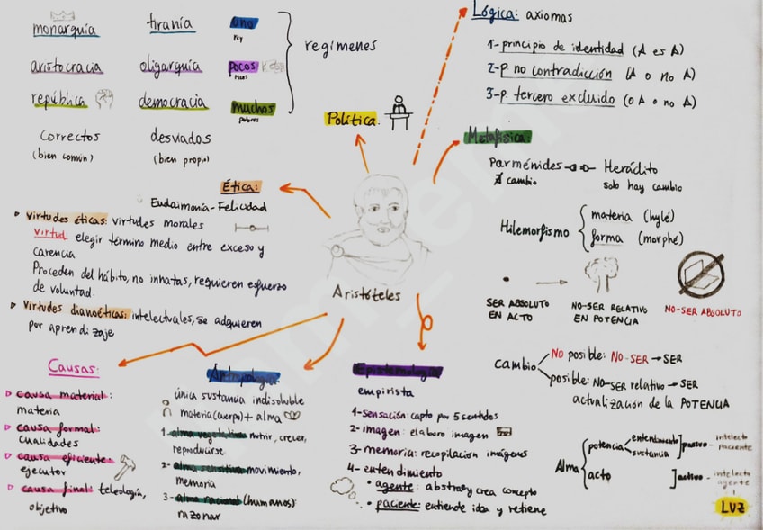 Esquema visual de los conceptos básicos e importantes que planteaba Aristóteles.