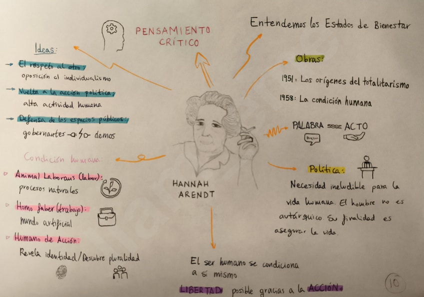 Esquema visual resumido sobre los conceptos planteados por una de las filósofas más influyentes, Hannah Arendt.