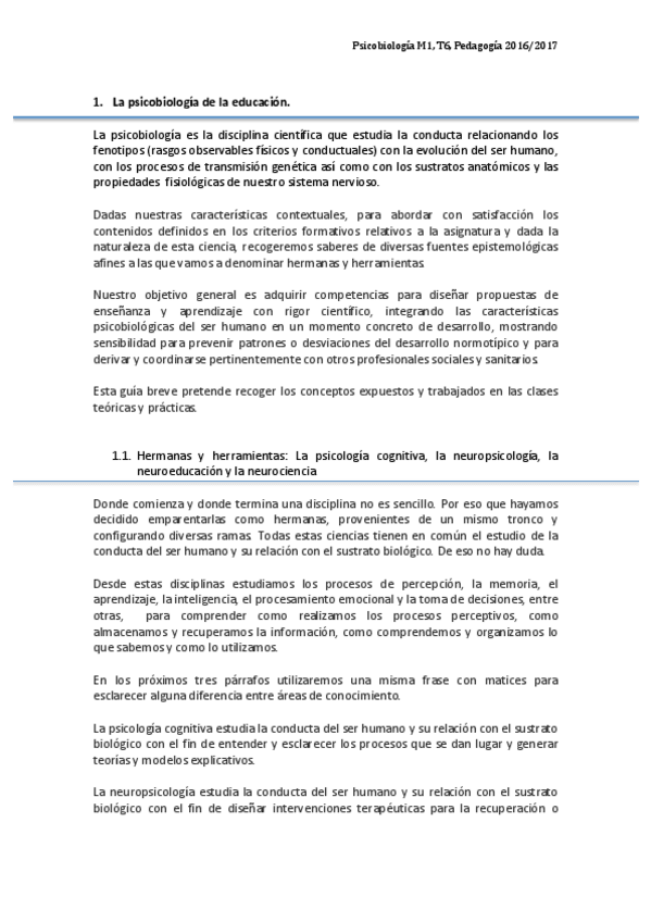 PSICOBIOLOGÍA DE LA EDUCACION POR TEMAS