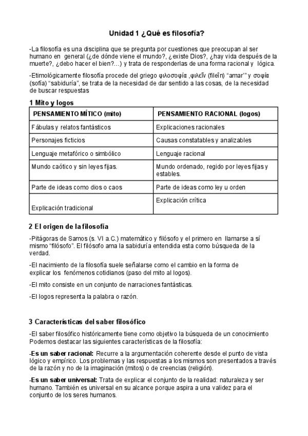 Esquema Tema 1 Filosofía 1 Bach