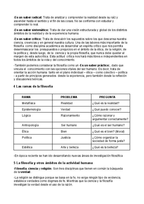 Resumen de algunas de las ramas de la filosofía para 1º Bachillerato.
