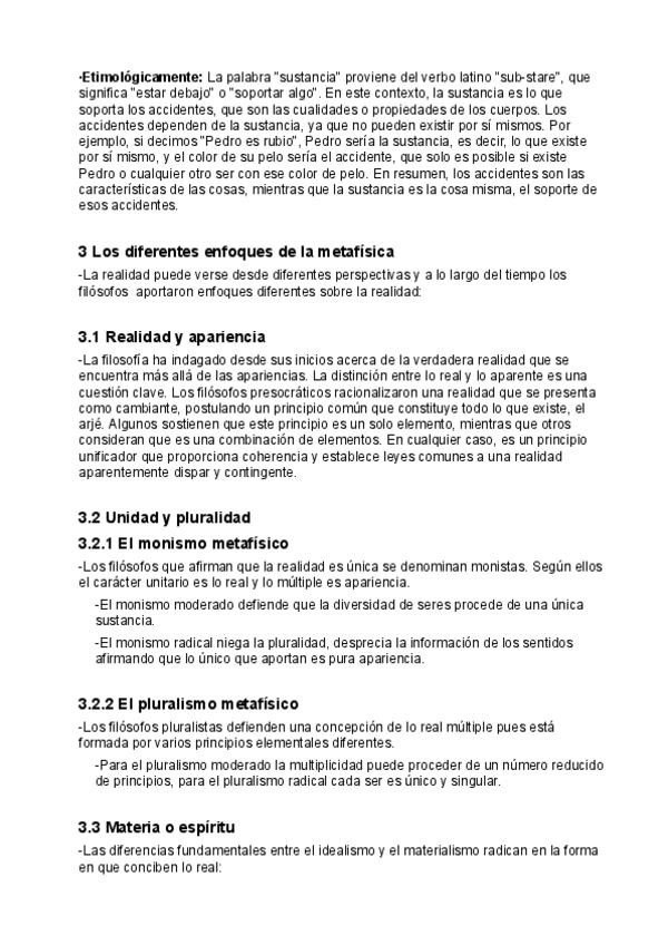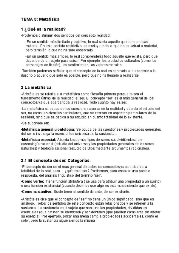Apuntes de Filosofía. TEMA 3: Metafísica y TEMA 4: Verdad