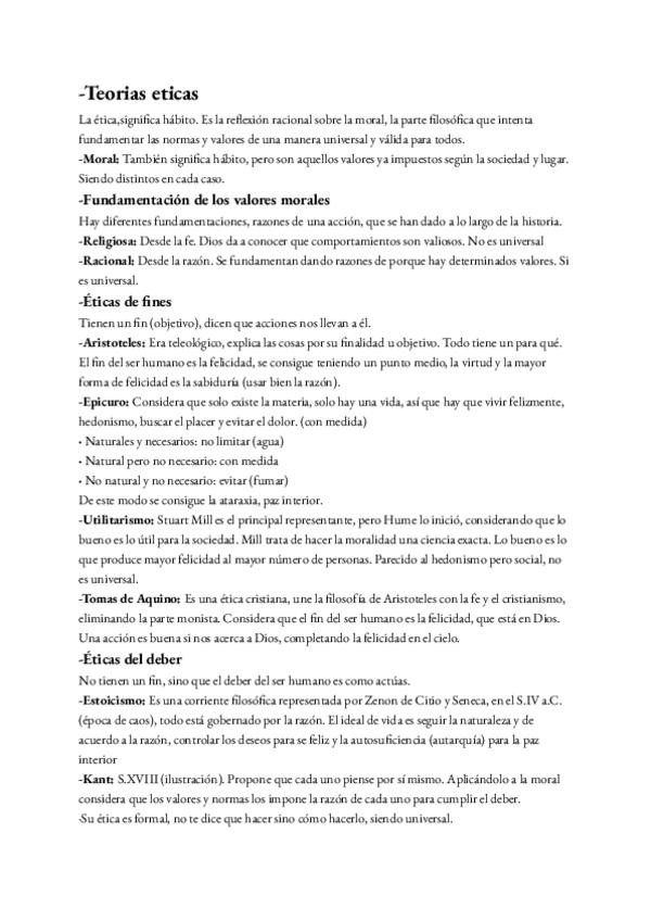 tema de las teorias eticas con definicion, etica de fines y etica del deber y las distintas corrientes y autores