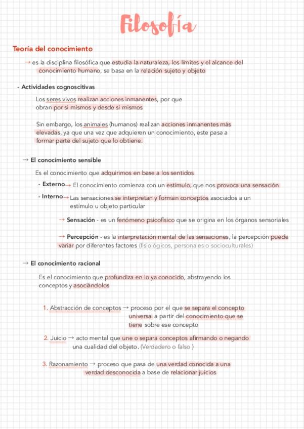 Apuntes teoría del conocimiento y corrientes gnoseológicas primero de bachillerato