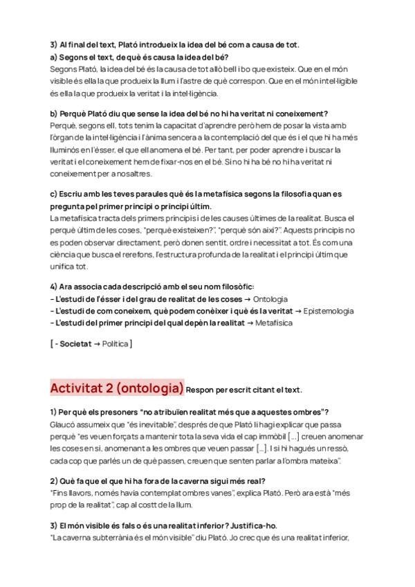 Activitats el mite de la caverna de Plató - Filosofia La visió epistemològica, ontològica i metafísica del mite. Treballem la idea del bé.