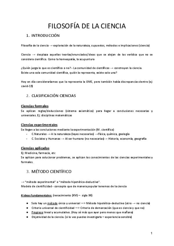 1. ¿Qué es la ciencia? 2. El método científico 3. Filosofía de la ciencia 4. Hacia una revisión de la ciencia