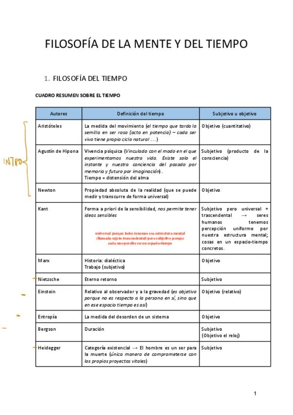 Apuntes de Filosofía del tiempo de 1 BACH. Nota en el examen 10