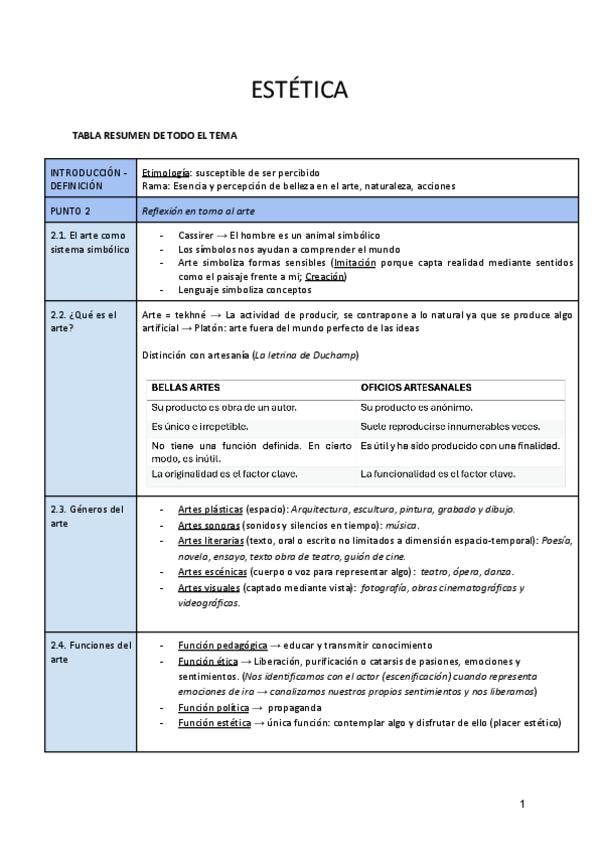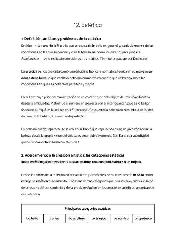 1. Definición, ámbitos y problemas de la estética 2. Acercamiento a la creación artística: las categorías estéticas 3. El arte y sus implicaciones filosóficas 4. Estética, ética y política 5. La reflexión en torno a la imagen y la cultura audiovisual