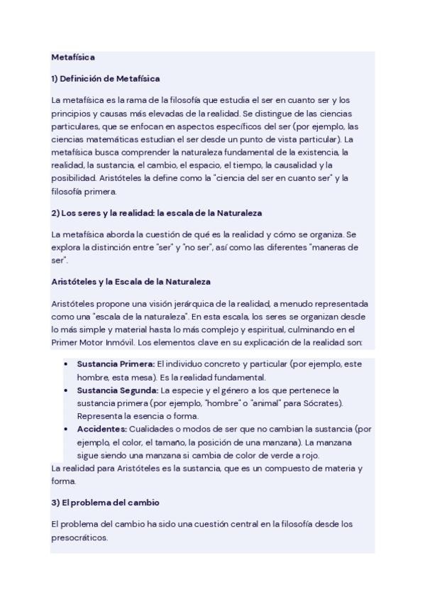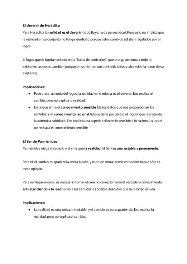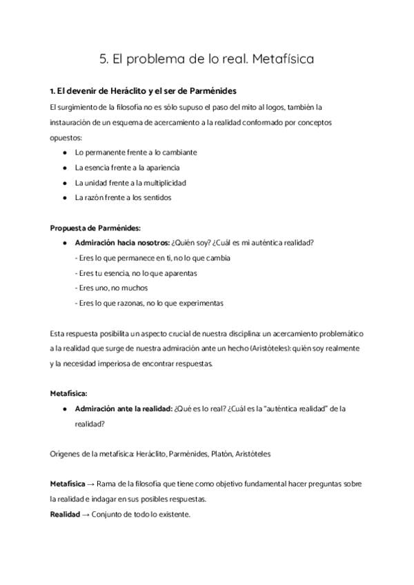 1. El devenir de Heráclito y el ser de Parménides 2. Platón: apariencia y realidad 3. La metafísica de Aristóteles 4. Metafísicas espiritualistas y metafísicas materialistas 5. Categorías y modos de ser 6. El problema de los universales
