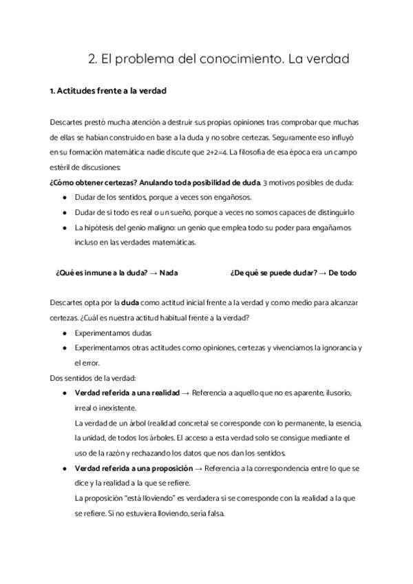 1. Actitudes frente a la verdad 2. Criterios de verdad 3. ¿Qué es la verdad? 4. ¿Qué es el conocimiento? ¿Cómo se produce? 5. Fundamentos y límites del conocimiento 6. El conocimiento y la verdad