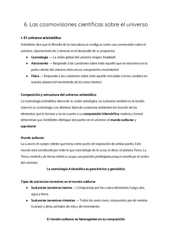 1. El universo aristotélico 2. El paradigma aristotélico-ptolemaico 3. La cosmología medieval: Tomás de Aquino 4. El giro copernicano en la cosmología 5. Hacia una cosmología moderna 6. El paradigma newtoniano 7. El debate cosmológico en la actualidad