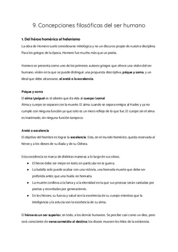 1. Del héroe homérico al helenismo 2. Del teocentrismo medieval al antropocentrismo renacentista 3. El ser humano en la filosofía moderna 4. El ser humano en la filosofía contemporánea: revisión y crítica 5. La reflexión filosófica en torno al cerebro y l