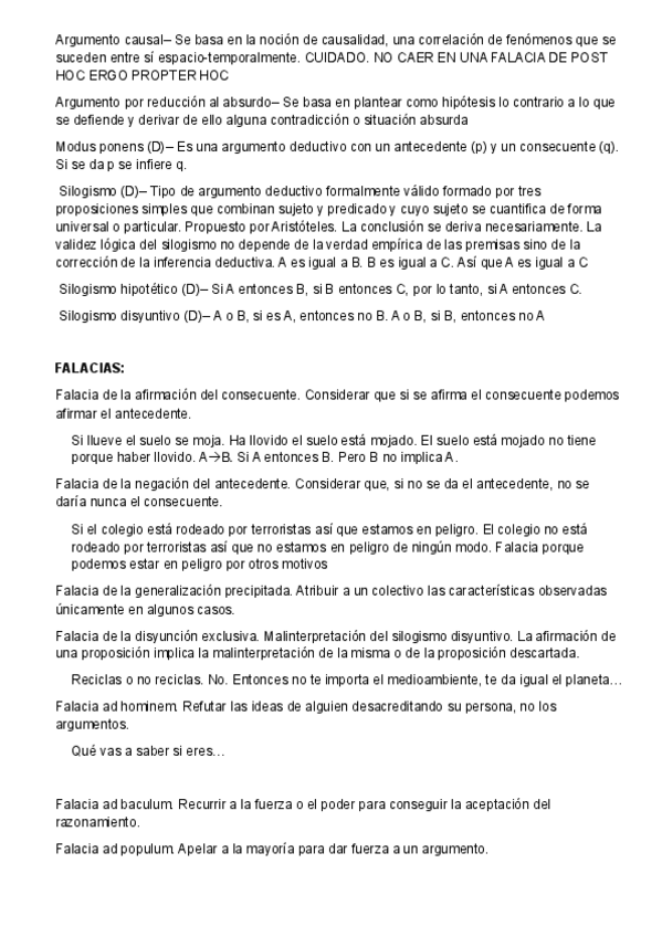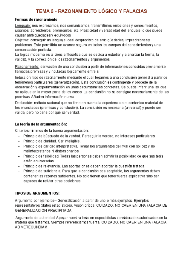 Temario Filosofía 1º Bachillerato (Tema 6) - Razonamiento lógico y falacias Formas de razonamiento Inducción y deducción La teoría de la argumentación Tipos de argumentos Falacias