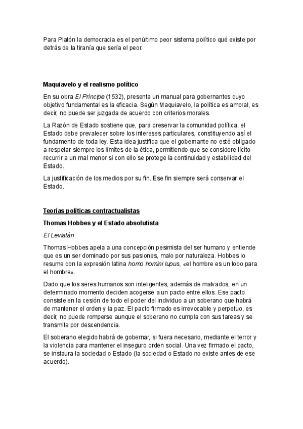 Temario Filosofía 1º Bachillerato (Tema 11) - Política Teorías políticas Platón y el gobierno de los filósofos Maquiavelo y el realismo político Teorías políticas contractualistas Thomas Hobbes y el Estado absolutista John Locke y el Estado liberal Ro