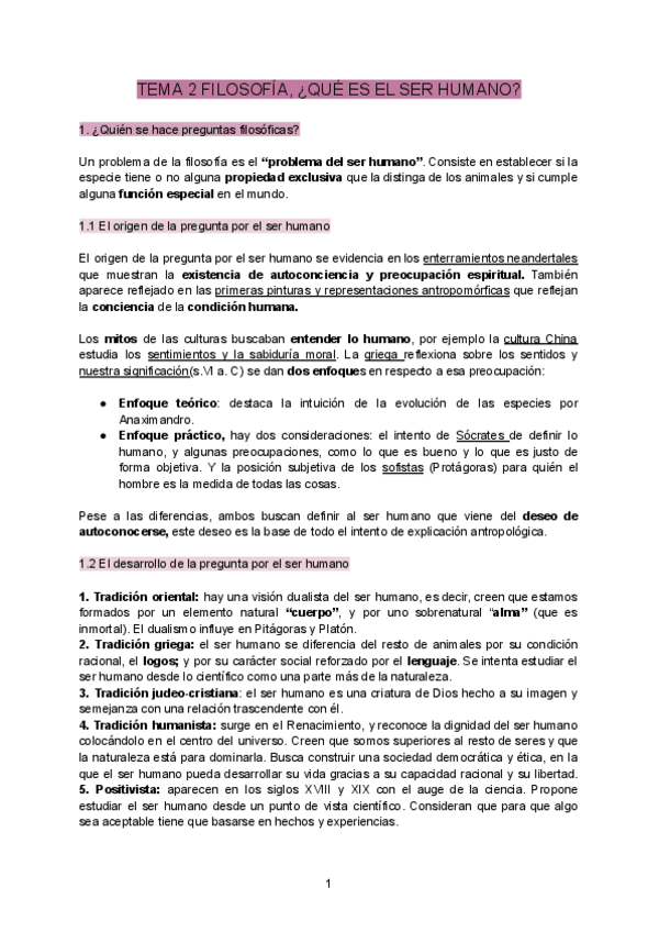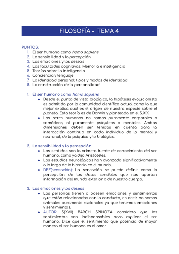 Tema de filosofía sobre el ser humano. Muy bien explicado y fácil de entender para estudiar:)