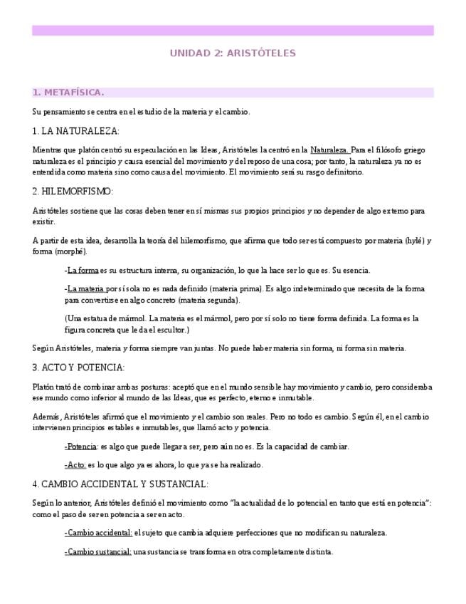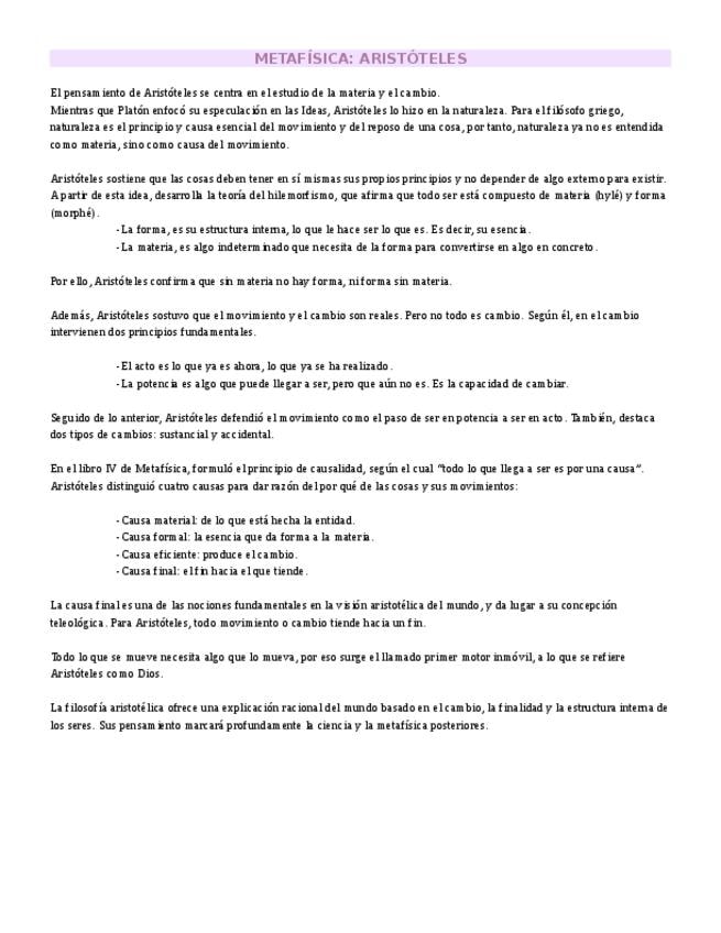 Apuntes de Aristóteles para la preparación de los Exámenes de Acceso a la Universidad. Bien resumidos y esquematizados, con todos los contenidos necesarios para superar la asignatura de Hª de la Filosofía y su examen en la PAU